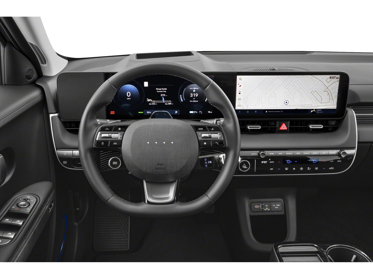 - Radio: AM/FM/SiriusXM/HD Audio System -inc: 12.3" color LCD gauge cluster w/EV technology display, navigation infotainment system, 6 speakers, wireless Android Auto and Apple CarPlay integration, Blue Link connected car system, vehicle Wi-Fi hotspot, Bluetooth® w/phonebook transfer; Hyundai Pay, dynamic voice recognition, USB input, Over-the-Air (OTA) Controller ECU and map/multimedia software update capability